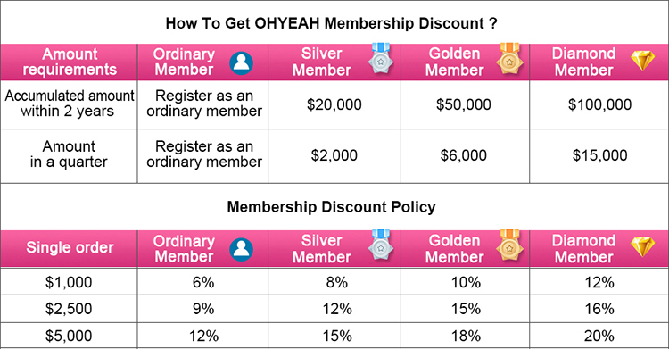 For the above situations that beyond scope of return or exchange service, Ohyeah company will give more discounts or preferential policies in future orders according to the circumstances.