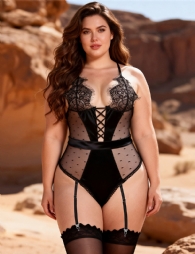 Product Name Plus Size Black Satin Lace Stitching Teddy With Garter