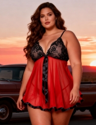 Home > Wholesale Plus Size Lingerie > Black Red Sexy Rhinestone Plus Size See-through Nightdress
