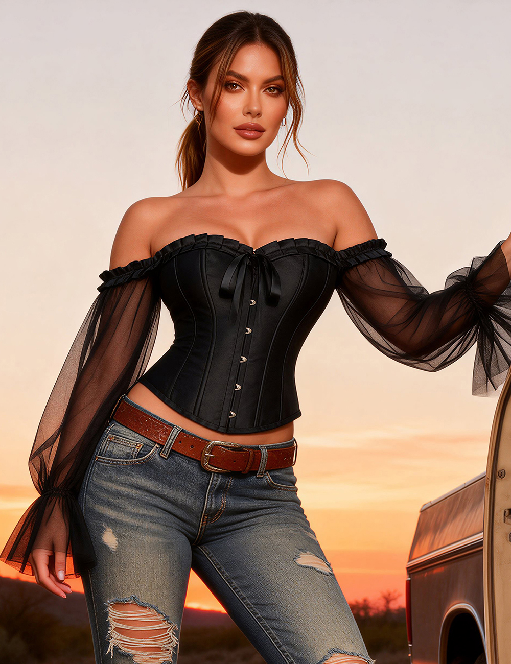 Home > Wholesale Corsets > 12 Pieces Plastic Black Sexy Lantern Long Sleeves Palace Style Corset