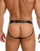 Crafted from PU leather fabric for a stylish, sleek look. Features a front U-shaped pouch design for a sexy, comfortable fit. Triangular cut offers simplicity and comfort. The crotch features an openable snap closure for convenient access and a unique touch. Dual thong design provides a comfortable, butt-lifting effect.