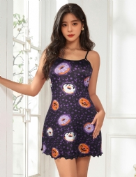 Main推关键词: printed milk silk, spaghetti strap, home wear