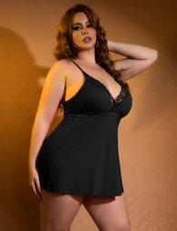 Home > Wholesale Pajamas & Sleepwear > Black Sexy Modal Lace Deep V Neck Suspender Nightdress