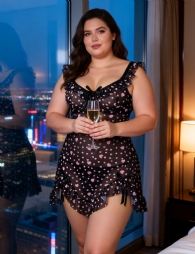 Product Name Black Heart Printed Mesh Ruffled Sexy Nightdress