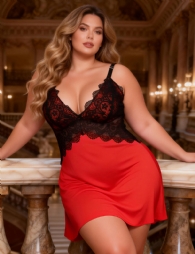 Product Name V-neck Red Lace Sexy Nightdress