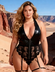 Home > Wholesale Plus Size Lingerie > Black Sexy PU Leather Lace Zippered Halter Bodysuit