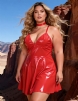 Home > Wholesale Plus Size Lingerie > Red Sexy Deep V-Neck Wet Look Faux Leather Suspender Nightdress