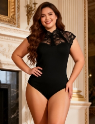 Home > Plus Size Teddy Supplier > One-piece Sleeveless Open Crotch Black Lace Stitching Fashion Bodysuit