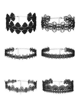 6pcs Black Sexy Lace Necklac...
