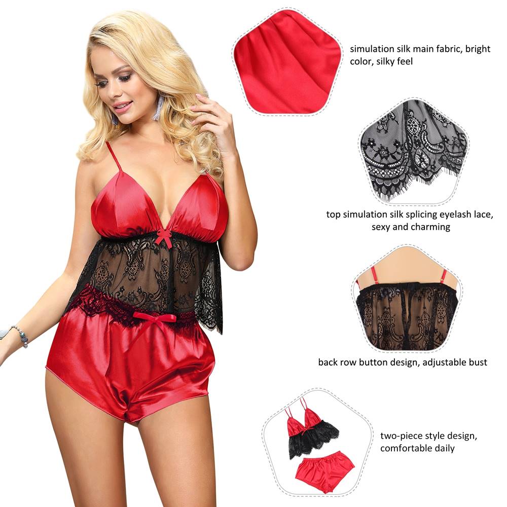 Product Name Plus Size Hollow Sexy Sleepwear Satin Lace Splicing Pajama Sets