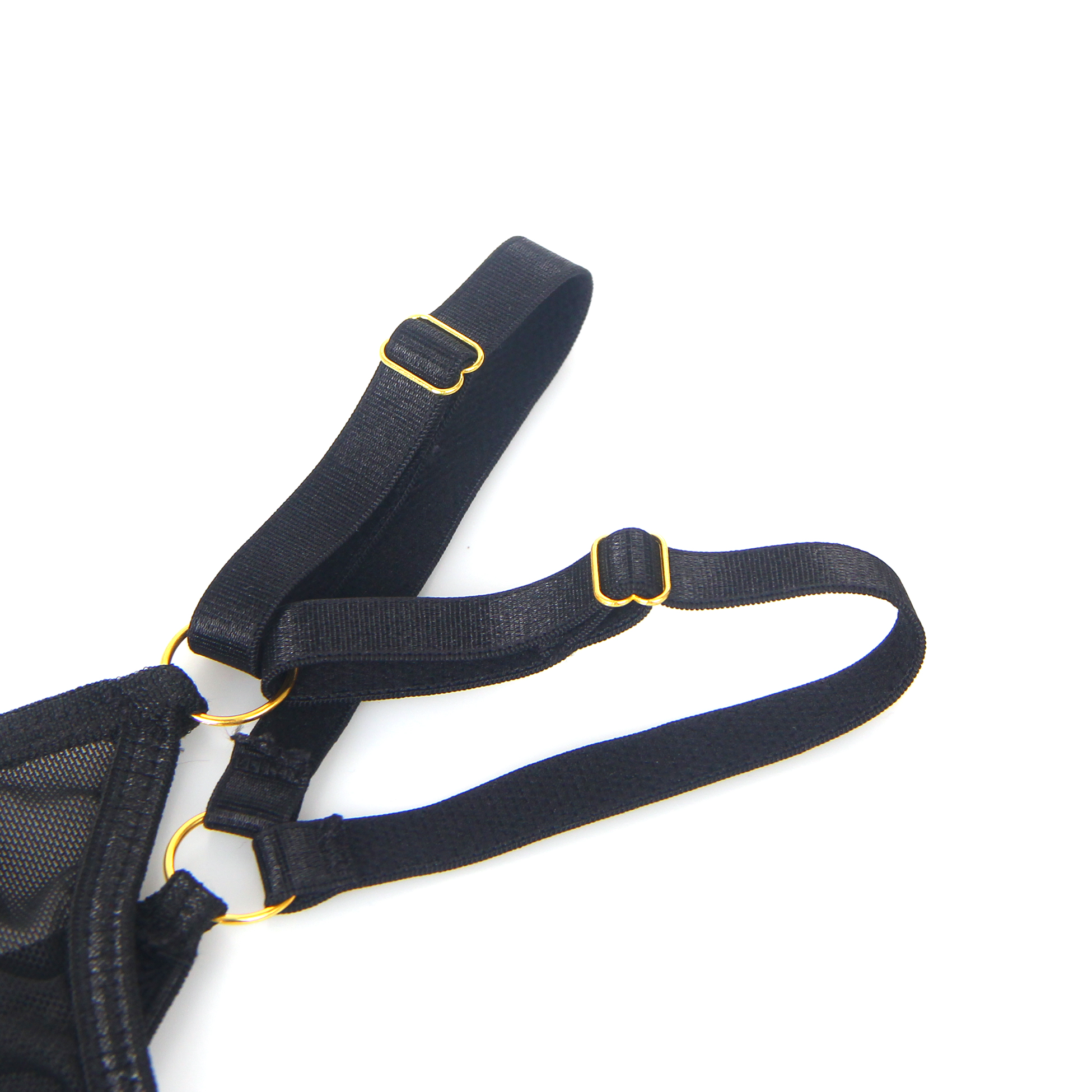 Main keywords: lightweight mesh, underwire, hook and eye, decorative straps, neck ring, leg straps.