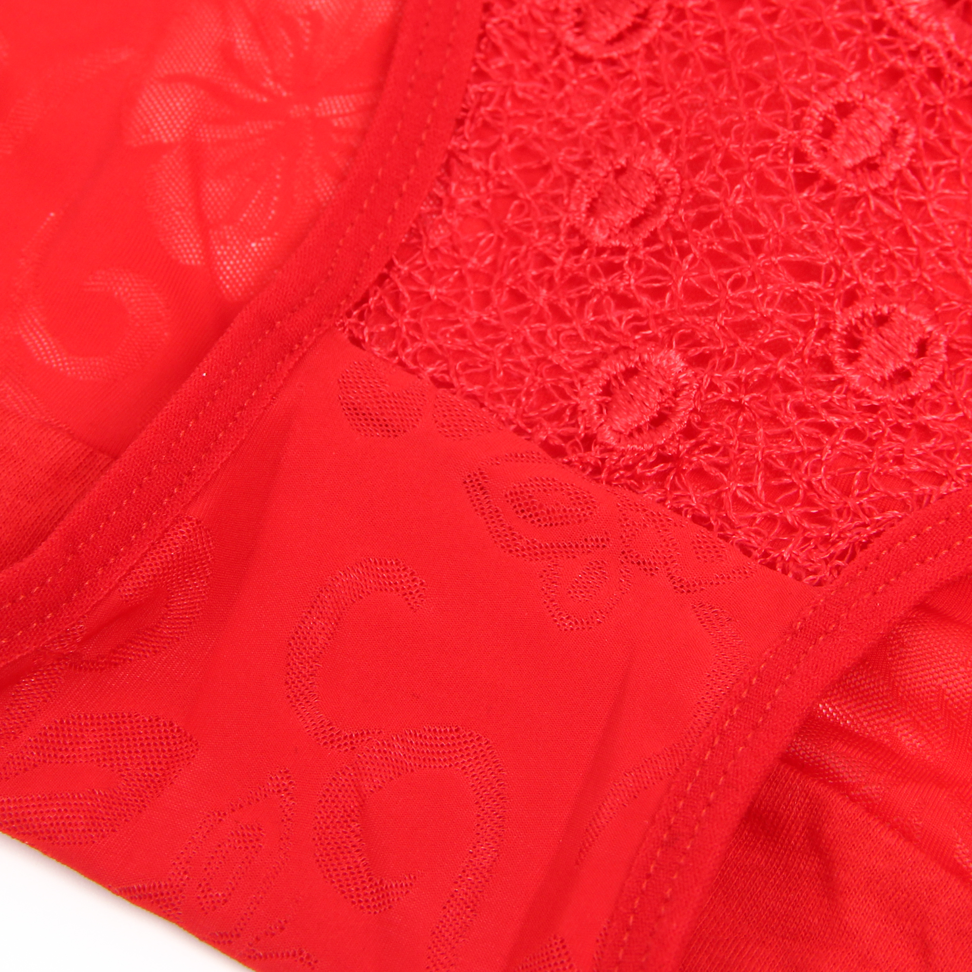 Standard Product Name: Available in black, red, and blue colors, mesh fabric, three-dimensional embroidery in the front center, hollow fine straps on both sides of the waist, cotton lining, M size, sexy women`s underwear.