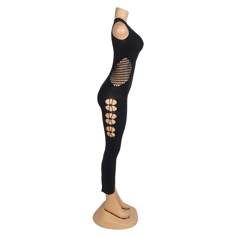 Standard Product Name: Black, made from high-elasticity nylon yarn, unique hollow design on both sides, size M, sleeveless bodycon long dress