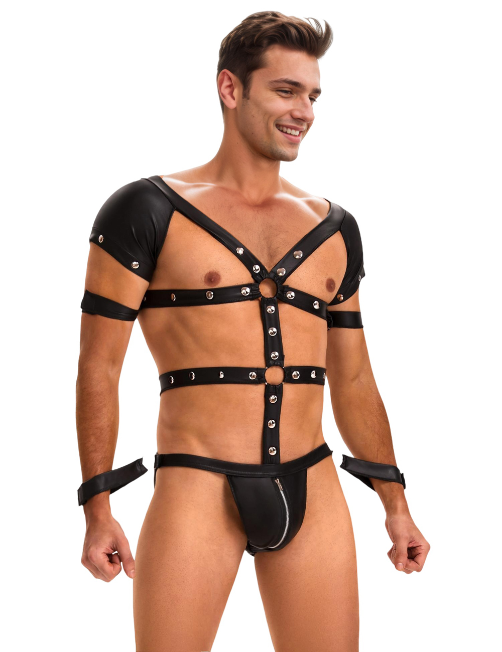 Product Name Black Sexy Faux Leather Harness Zipper Men Bodysuit Lingerie