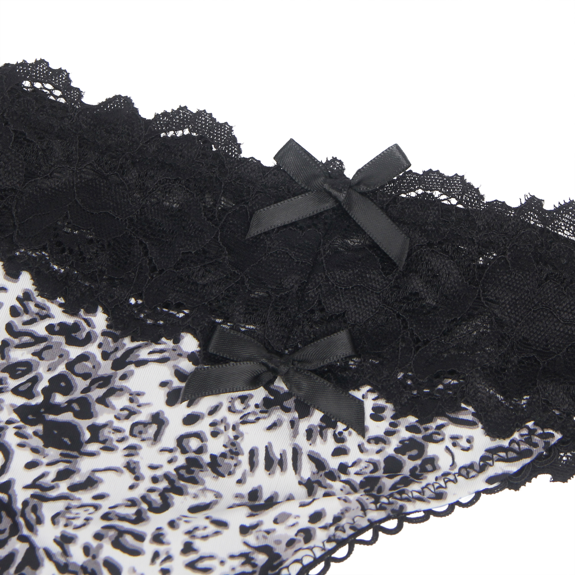 Standard product names: 7 colors in black, white, pink, burgundy, yellow leopard, navy blue, white leopard, lace mesh + ice silk fabric, bowknot, crossover ribbon, cotton padding, M-5XL, women`s sexy underwear