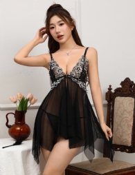 Home > > Black Lace Stitching Irregular Skirt Perspective Babydoll