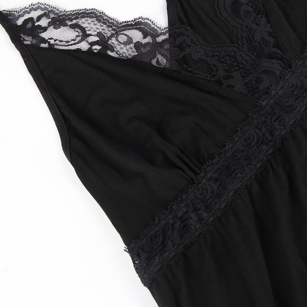 Product Name Stretchy Deep V-neck Modal Black Plus Size Nightdress with G String