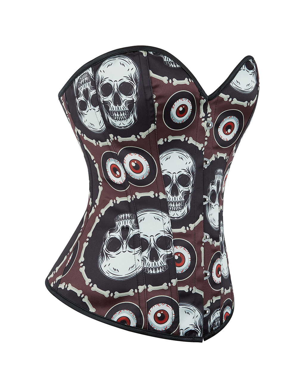 Standard Product Name: Black, jacquard polyester-cotton main fabric, equipped with 15 soft bones, Halloween skull print, adjustable ribbon design at the back, internal support, sizes S-2XL, Halloween strapless shaping dress;