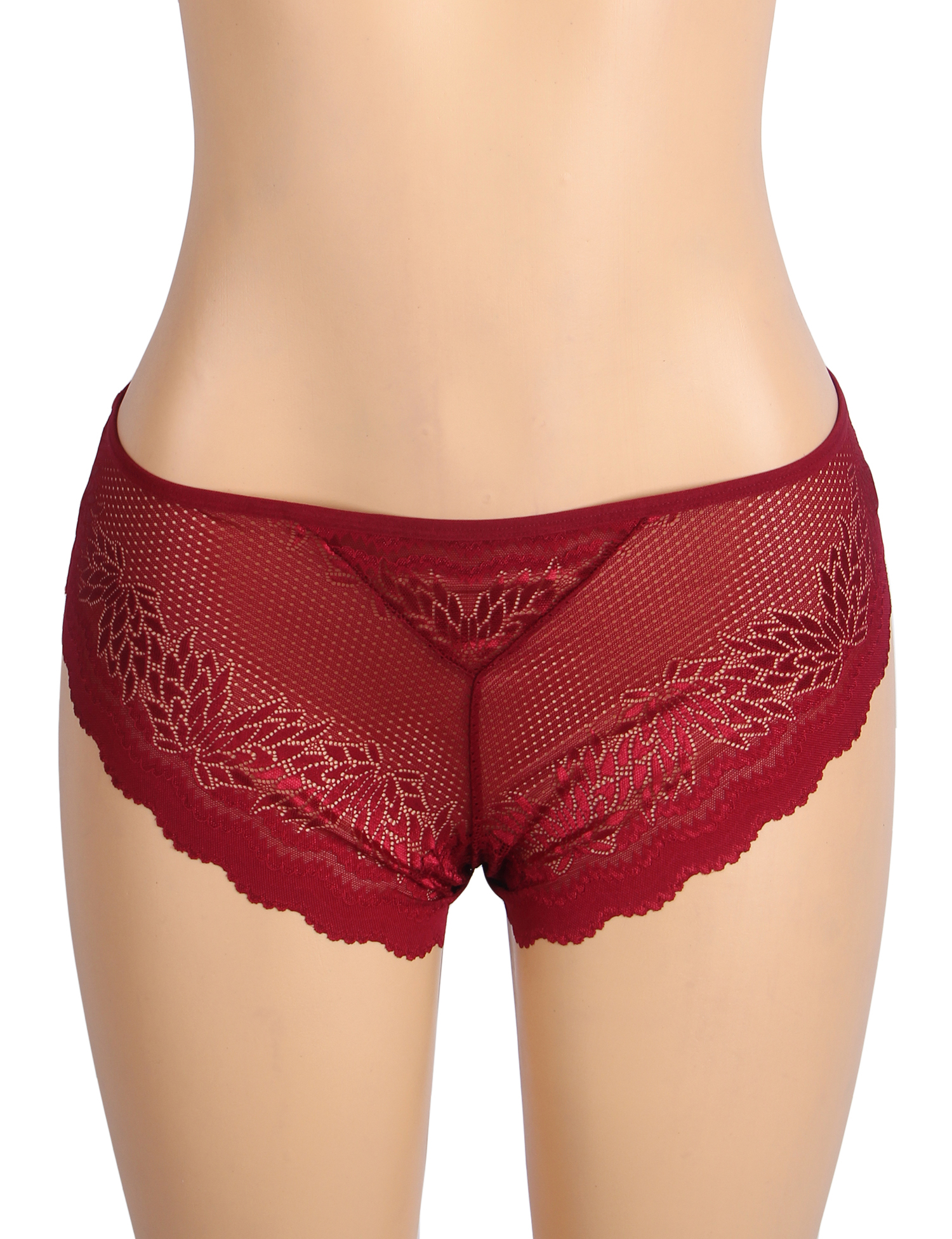 Product Name Burgundy Sexy Metal Heart Lace Hollow Out Women Panty
