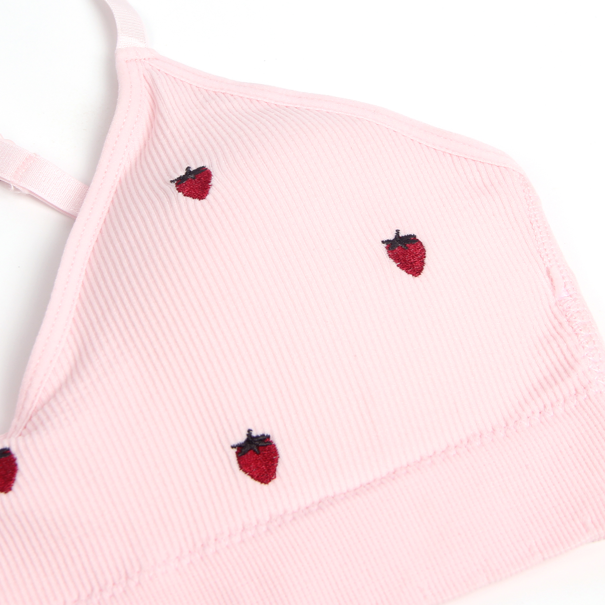 Product Name Pink Sexy Strawberry Embroidery Knitted Seamless Bra Set