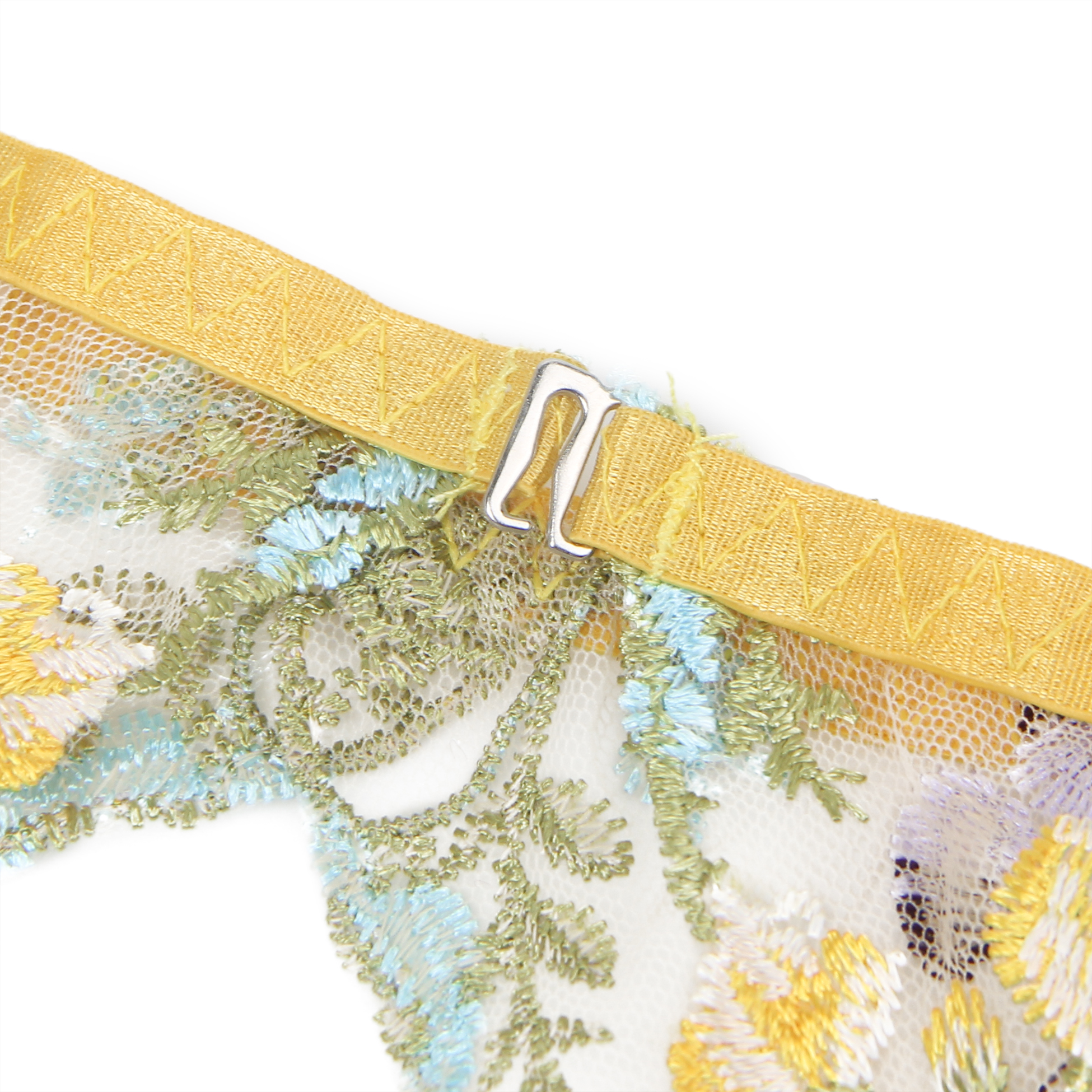 Product Name Yellow Sexy Mesh Embroidery Floral Lace Bra Set with Garter Leg Rings