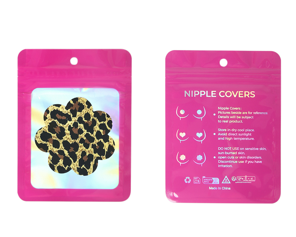 Standard product name: Leopard print satin, ultra-thin seamless, adhesive-free for delicate area, one size, disposable leopard print satin nipple covers.