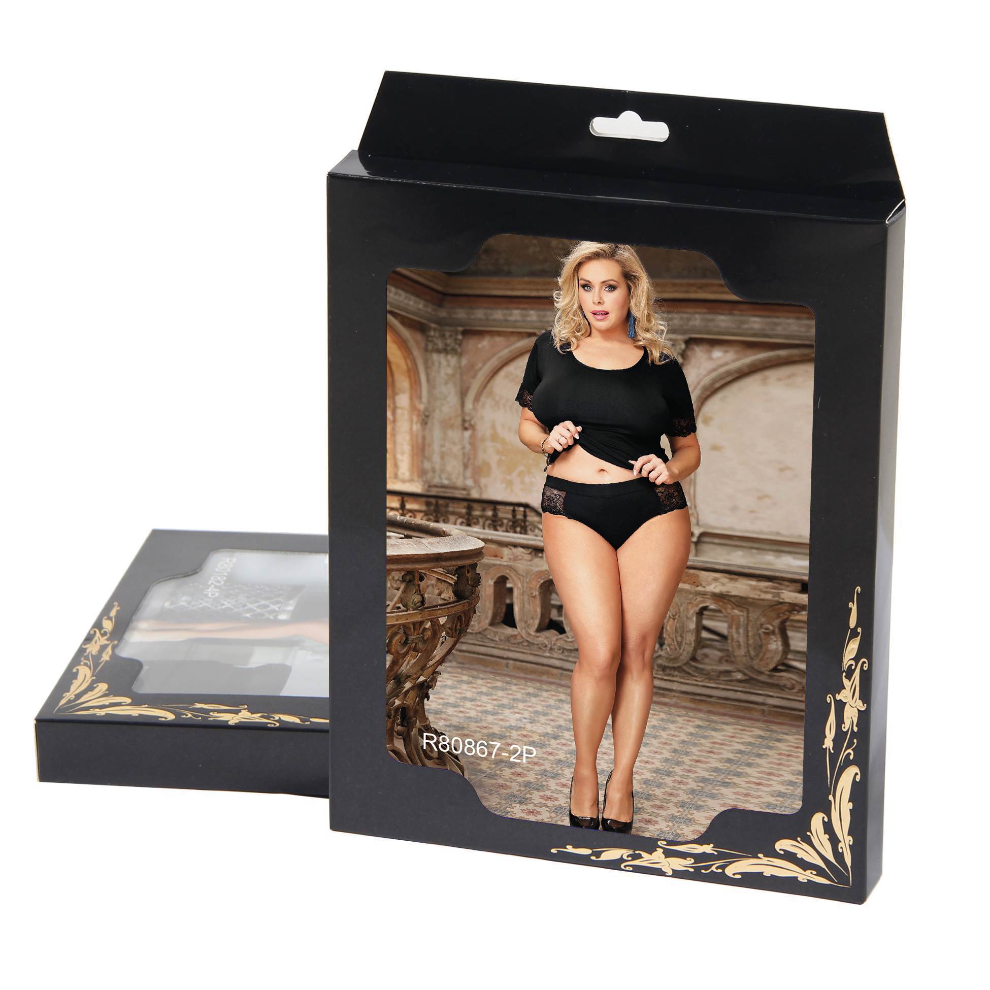 Home > Plus Size Pajamas Supplier > Stretchy Modal Casual Plus Size Sleepwear Black Two-piece set