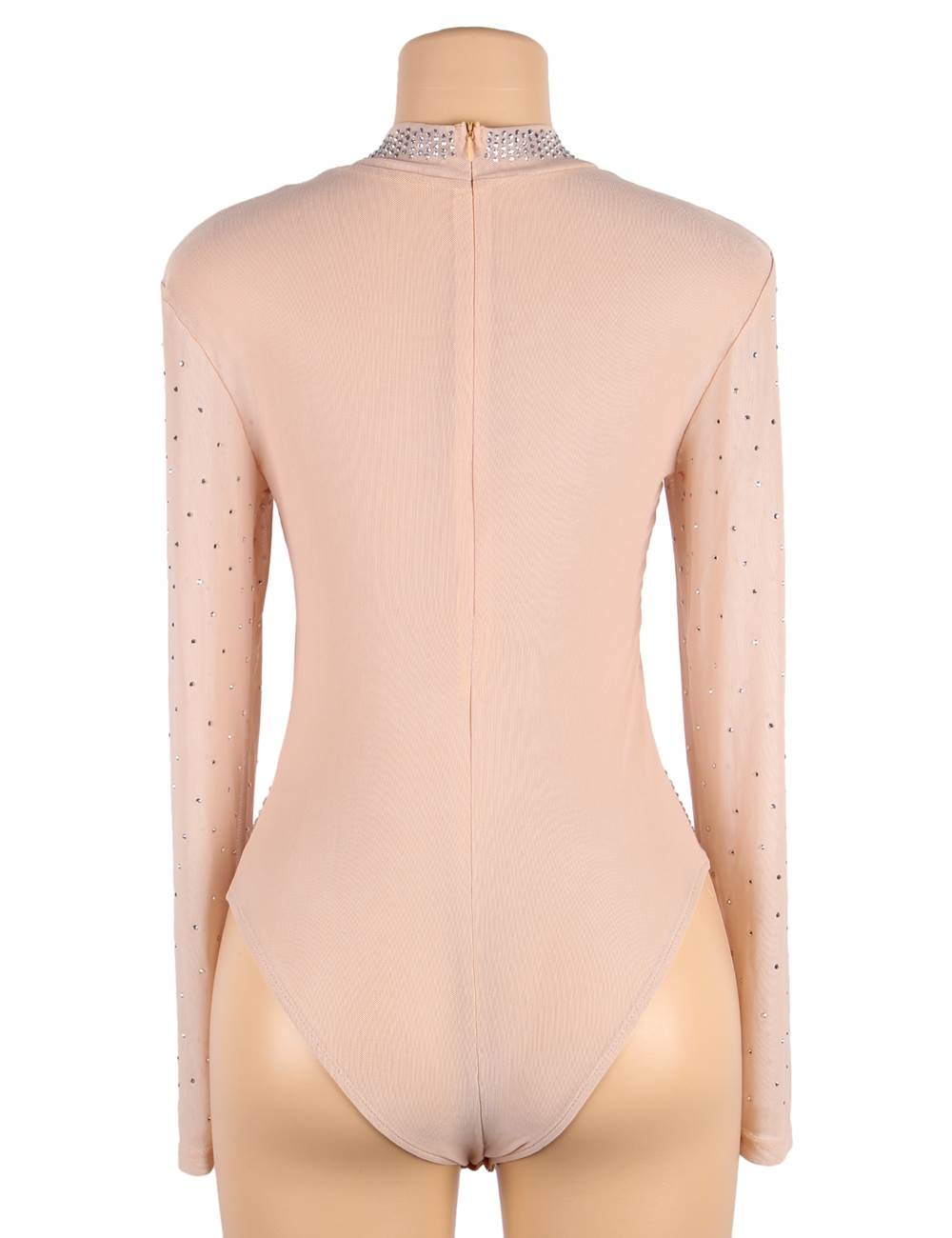 Product Name Long Sleeve Mesh Rhinestone Sexy Women Transparent Teddy