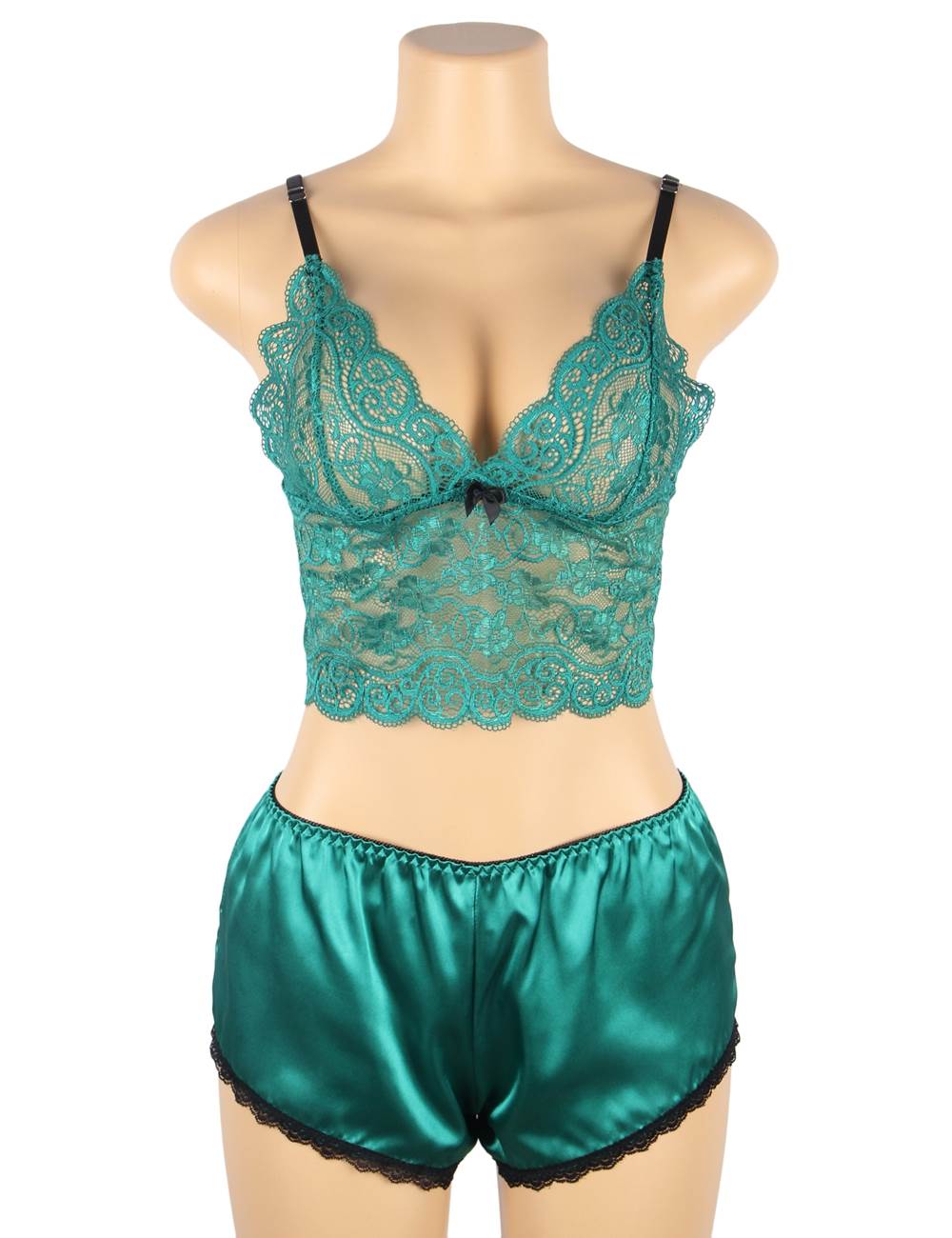 The R80900 Pajamas & Sleepwear Set, created by Ohyeah Company, is a versatile sleepwear set consisting of three pieces that can easily become a wardrobe staple. Its unique features make it stand out from other sleepwear options available in the market. The first piece of the set is a short lace camisole top that is playful and sexy at the same time. The intricate lace fabric adds a feminine touch to the design, making it an excellent choice for women who want to feel confident and attractive. The top includes adjustable straps and a back clasp, allowing you to customize the fit according to your preference. The second piece is a pair of silky satin boxer shorts, made of high-quality, smooth and luxurious satin material that feels soft against the skin. The shorts come with a faux drawstring and an elastic waistband, providing extra comfort. Additionally, the shorts feature black lace trim at the hem and a vibrant pop of color, adding a touch of glamour to the design. The R80900 Pajamas & Sleepwear Set also includes a back clasp design, which allows you to adjust the fit. It comes in four standard colors - black, red, blue, and green, and is available in various sizes, ranging from small to 5XL, making it suitable for women of all body types. Lastly, the set’s versatility is one of its major selling points. You can effortlessly mix and match the pieces to create different outfit combinations, making it an ideal choice for lounging at home or a romantic night in. It is also perfect for those who want to look stylish and comfortable while still feeling free to move around. To sum up, the R80900 Pajamas & Sleepwear Set from Ohyeah Company should be a part of every woman’s sleepwear collection. With its delicate lace and satin materials, adjustable design, and three-piece set, it guarantees to provide both comfort and style. So don’t hesitate to treat yourself to this ultimate sleepwear set today!