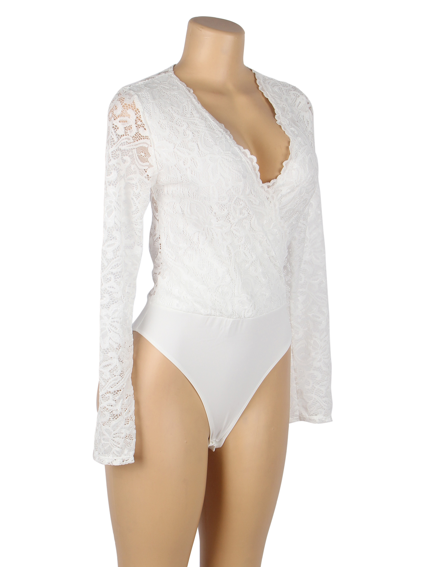 Product Name White Brushed Lace Long Sleeve Bodysuit