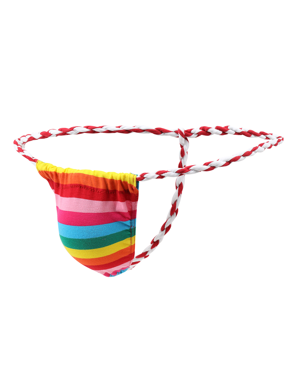 Standard Product Name: Rainbow color, cotton fabric, front U-shaped pouch design, waist tie with hemp rope design, M-2XL, men`s sexy thong.