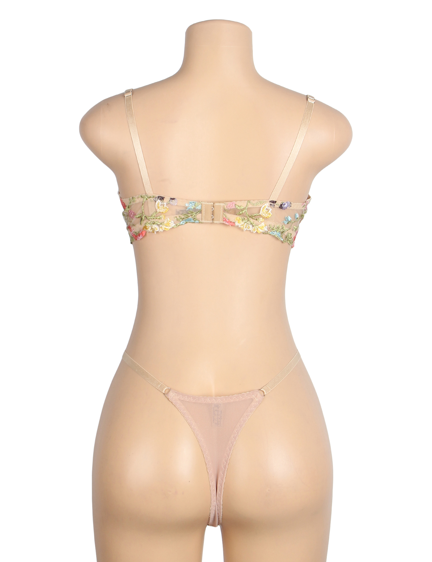Home > Bra & Bra Sets Supplier > Yellow Sexy Mesh Floral Embroidery Bra Set