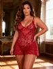 Product Name Sexy Slim Purple Plus Size Lace Deep V Neck Sleepwear With Thong