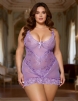 Home > Wholesale Plus Size Lingerie > Sexy Slim Purple Plus Size Lace Deep V Neck Sleepwear With Thong