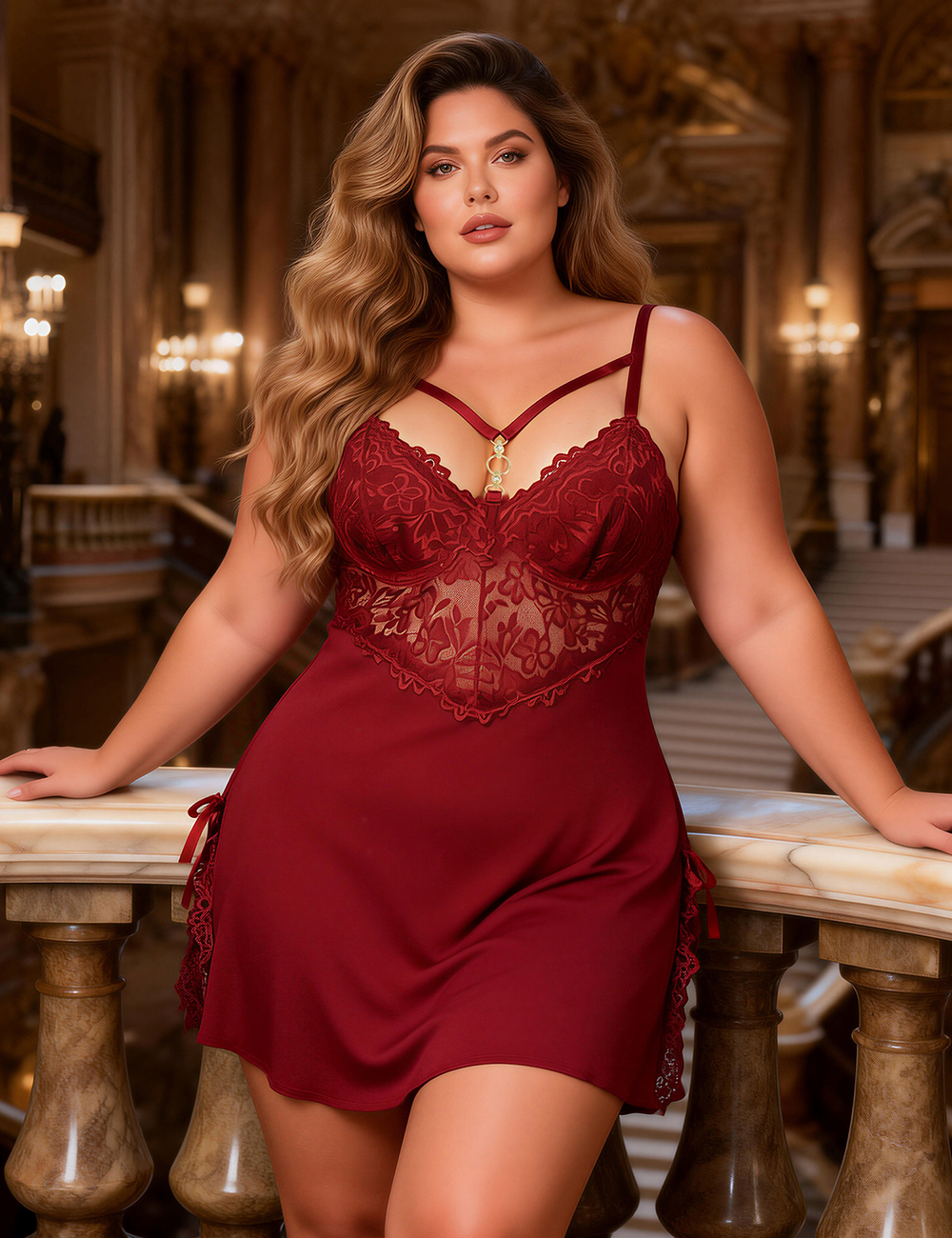 Home > Plus Size Pajamas Supplier > Burgundy Sexy Modal Lace Slit Nightdress