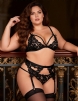 Home > Plus Size Bra Wholesale > Plus Size Sexy three-piece sexy lingerie with deep V and peach heart garter