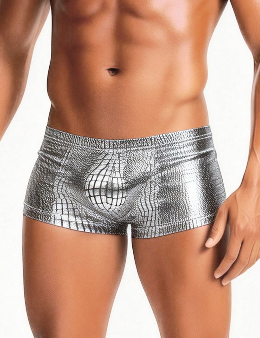 Product Name Silver Low-rise Faux Snakeskin Men Boxer