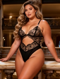 Home > Plus Size Teddy Supplier > Black Sexy Hollow Cut Lace See Through Teddy Lingerie