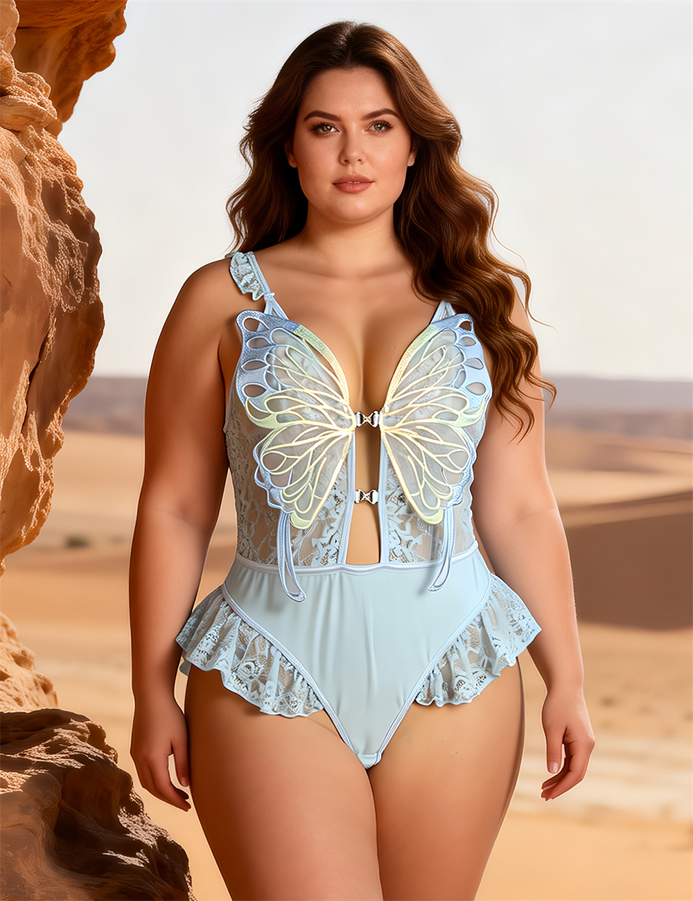 Home > Plus Size Teddy Supplier > Blue Sexy Lace See Through Butterfly Bodysuit