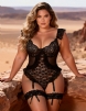Home > Plus Size Teddy Supplier > Pink Sexy Jacquard Lace Mesh Crotchless Bodysuit With Garter