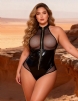 Home > Plus Size Teddy Supplier > Black Sexy Halter Neck Zipper PU Leather Mesh Bodysuit